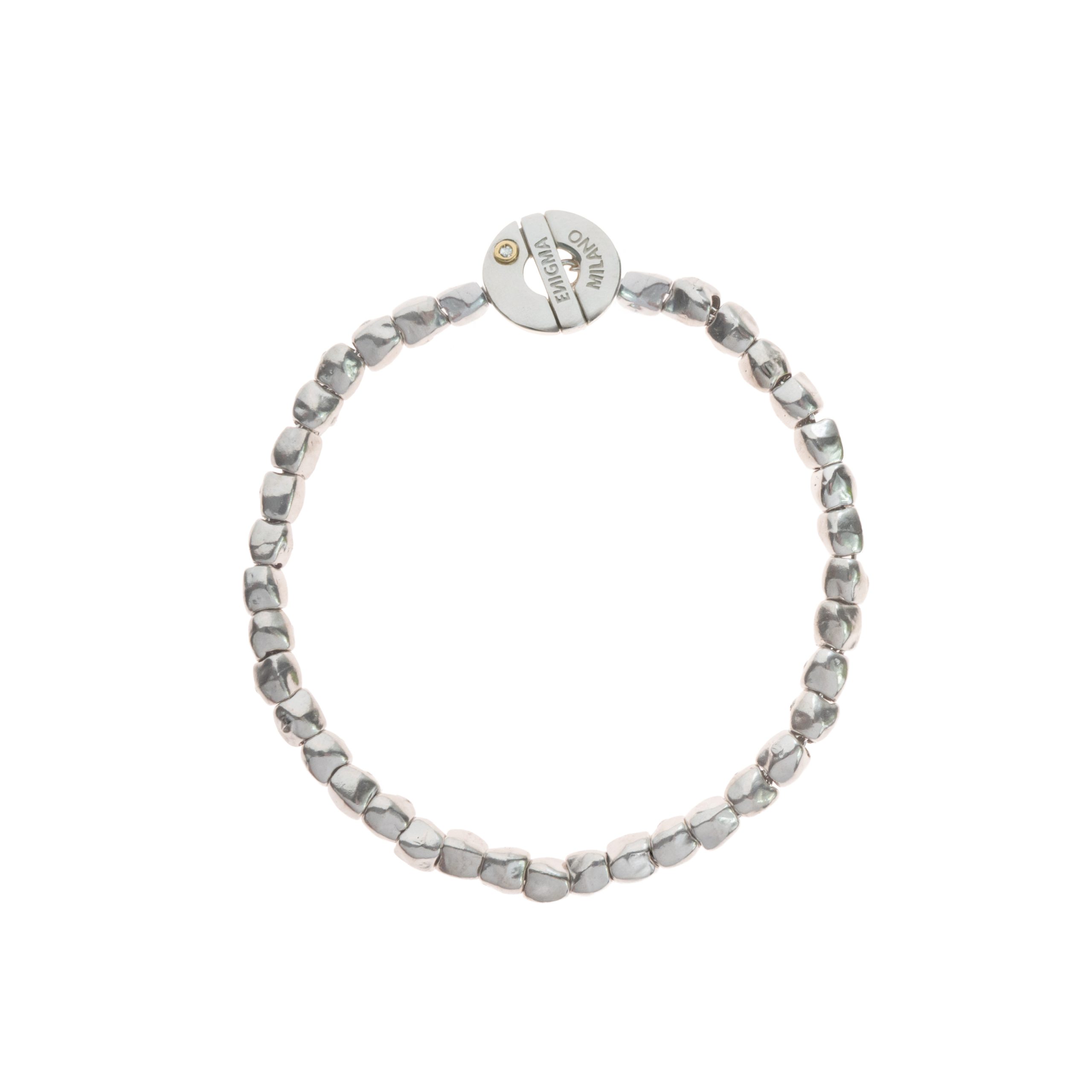 Bracciale a catena composto da 35 dadini, il tutto in argento 925 millesimi e chiusura con castone in oro 750 millesimi e diamante da kt.0,1